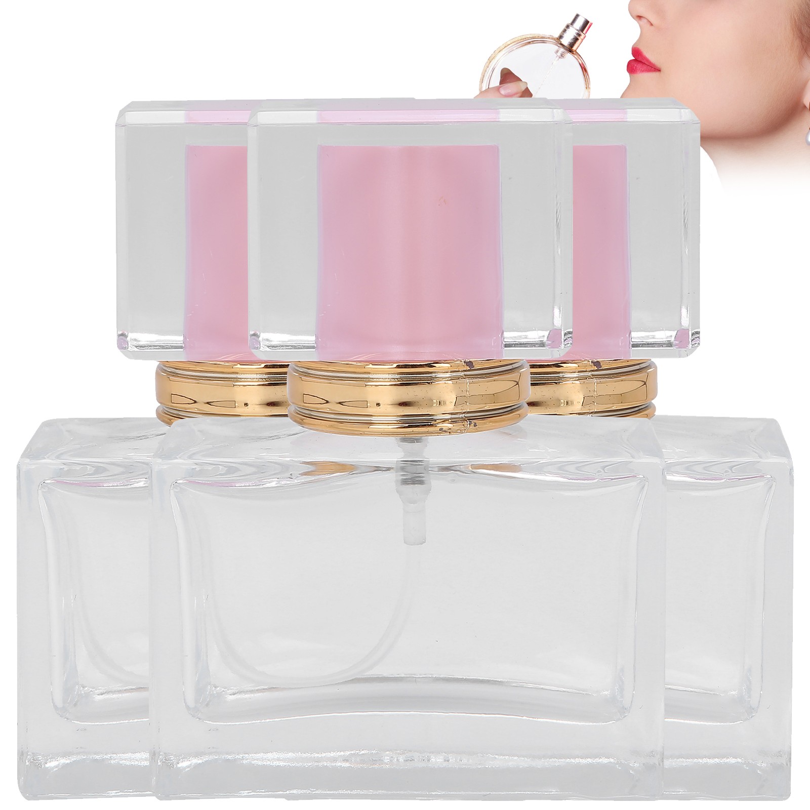 3pcs Glass Empty Perfume Bottle Makeup Refillable Perfume Bottle Dispenser Pink