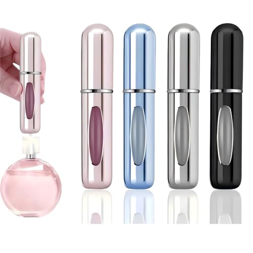 5ml Leakproof Metal Perfume Atomiser Bottle - Premium Travel Spray Bottle with Bottom-Fill Design, 4 Gloss Colours (Black/Silver/Pink/Blue) for Gym, Airplane & Daily Use