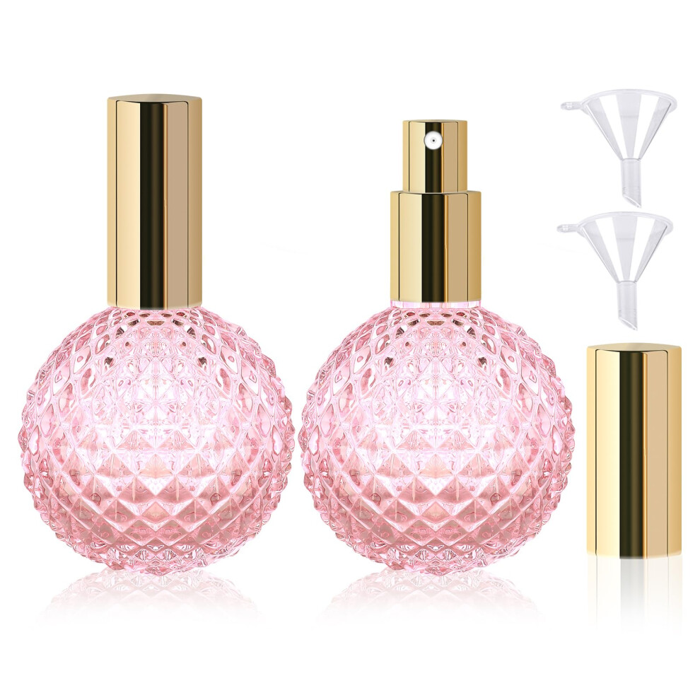 2Pcs Vintage Glass 100Ml Refillable Perfume Bottle With Pink Sprayer