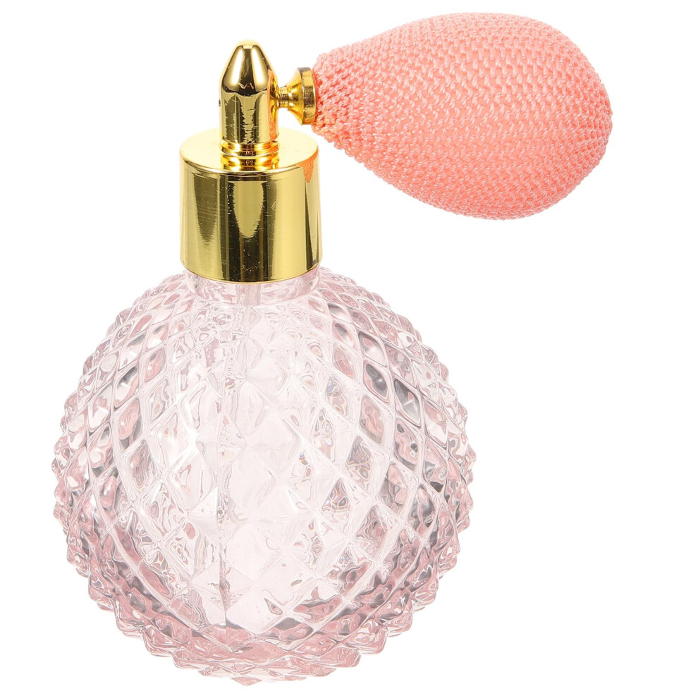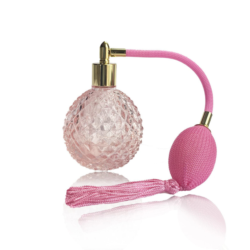 Pink Refillable Glass Perfume Spray Bottle with Bulb Pump for Travel Fragrance and Essential Oils