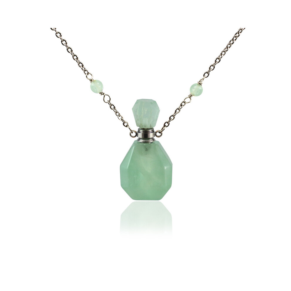 Perfume Bottle Pendant Necklace, Natural Rose Quartz Pendant With Silver Plated Chain, Vintage Pink Crystal Necklace For Aromatherapy Necklace