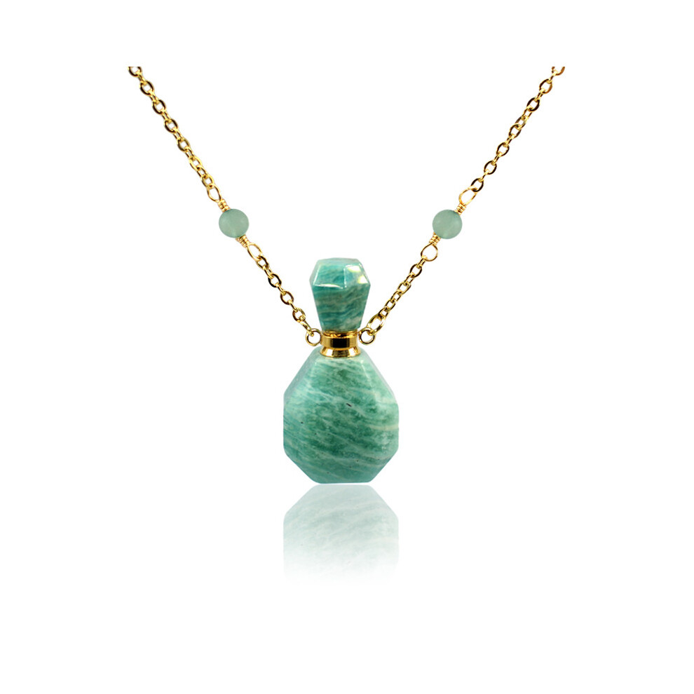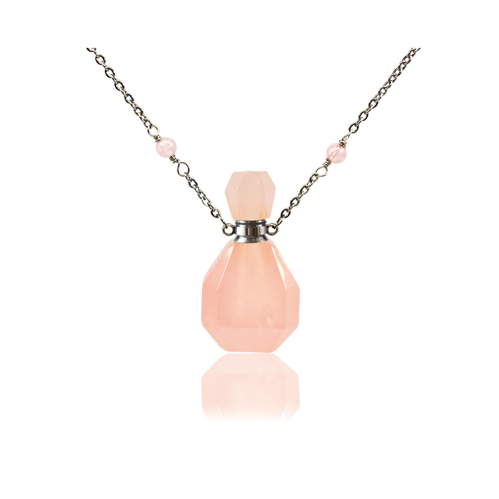 Natural Rose Quartz Perfume Bottle Pendant Necklace, Vintage Pink Crystal Necklace With Stainless Steel Chain For Essential Oil, Hexagonal Pointed Pen
