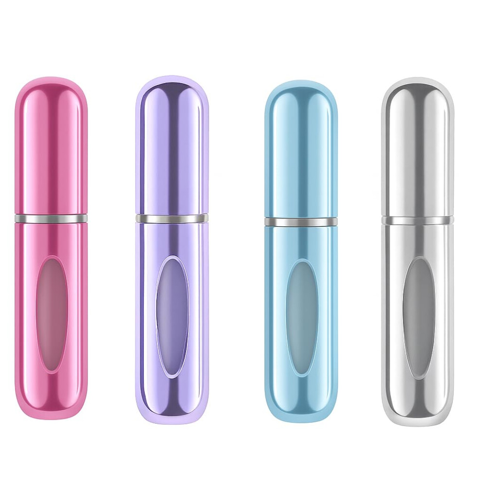 Refillable Perfume Bottle 5ml Travel Atomizer with Leakproof Pump and Metallic Finish, Pink Lilac Blue Silver