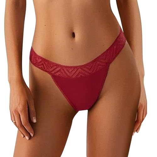 Period Knickers Women,Women's Reusable Thong Lace Underwear 4 Solid Color Sexy Design (Red, M)