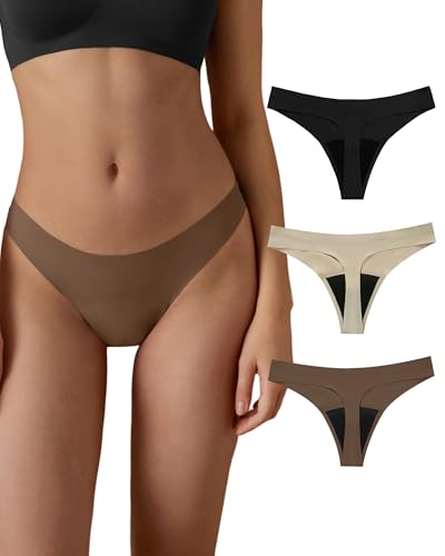 SHARICCA Period Pants for Women Sexy Period Knickers 20ML Absorbent Cotton Leak Proof Thong Menstrual Underwear Comfortable Seamless Tanga(Multicolor-3P02-M-V)