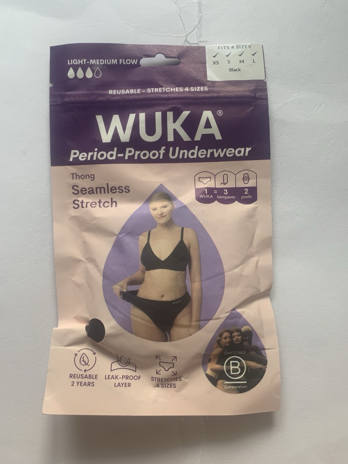 WUKA Period Proof Underwear Thong Seamless Stretch Black XS-L Light-Med