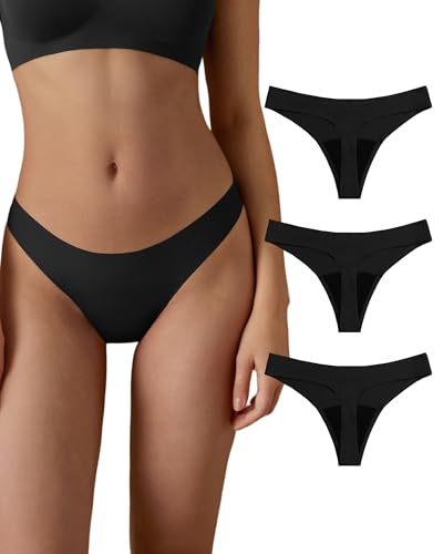 SHARICCA Period Pants for Women Sexy Period Knickers 20ML Absorbent Cotton Leak Proof Thong Menstrual Underwear Comfortable Seamless Tanga(Black-3P01-L-V)