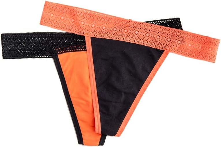 Lace Thong Period Underwear for Women, Leak Proof Period Thongs, Absorbent Panty, Menstrual Thong Bikini Bottom, Black-3pack, M
