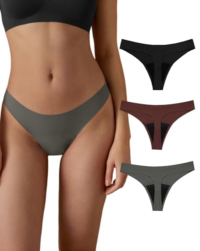 SHARICCA Period Pants for Women Sexy Period Knickers 20ML Absorbent Cotton Leak Proof Thong Menstrual Underwear Comfortable Seamless Tanga(Multicolor-3P02-L-V)