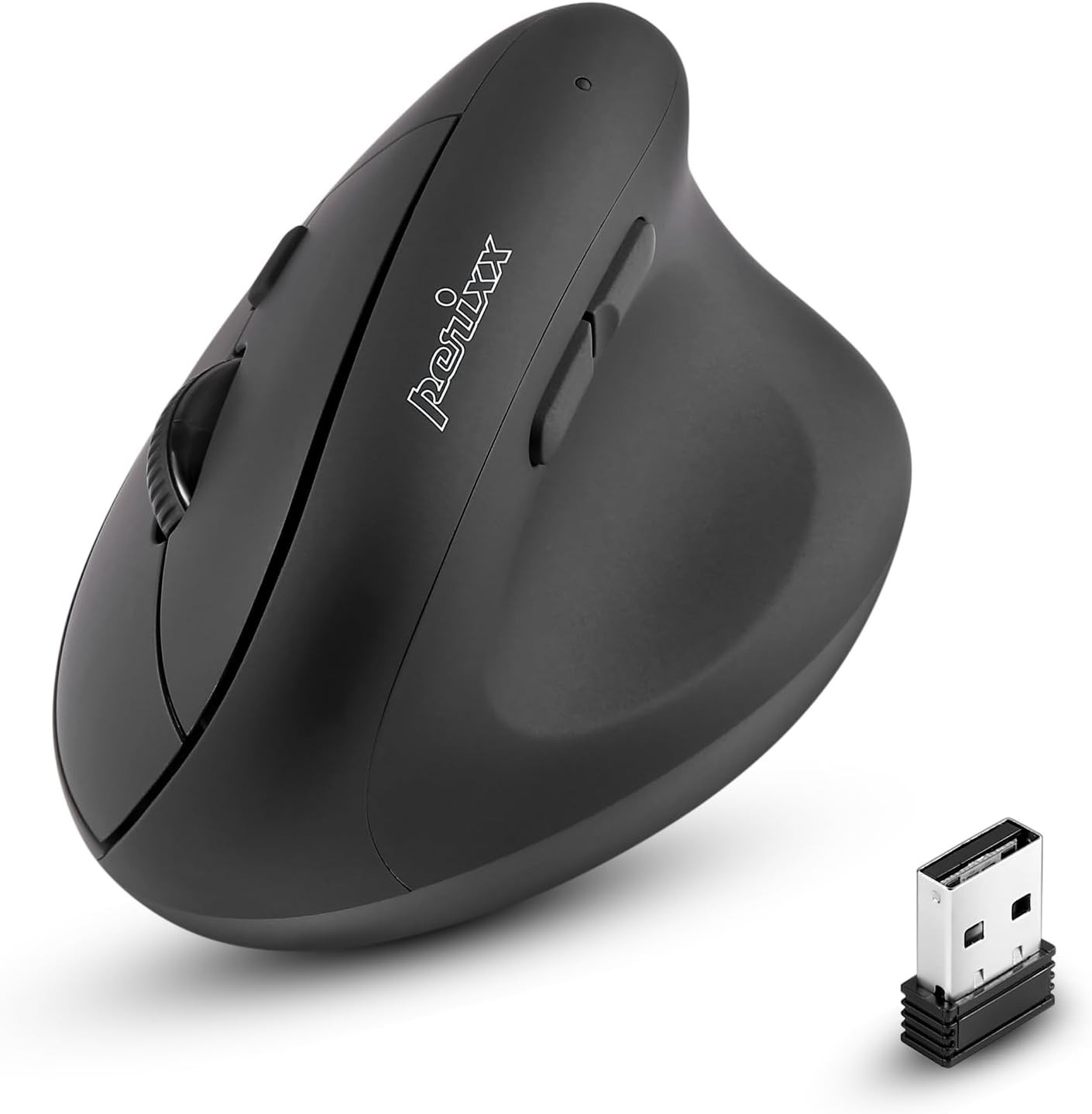Perixx PERIMICE-721 Wireless Ergonomic Mouse - 5 Button Optical Design - Compatible for Desktop and Laptop PC - Wireless 2.4 GHz (Iron Black)