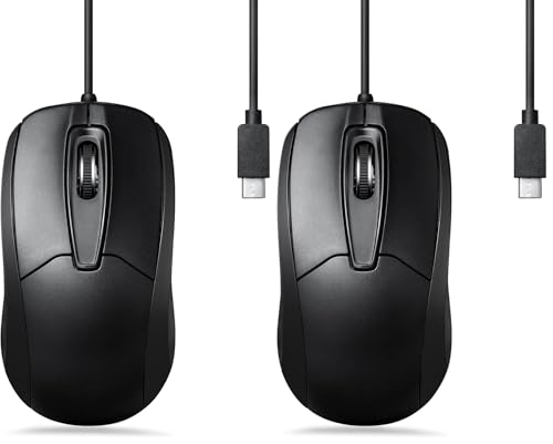 perixx PERIMICE-209C USB Type C Wired Optical Mouse - 4.9 Ft Cable - 1000 DPI - Black (Pack of 2)