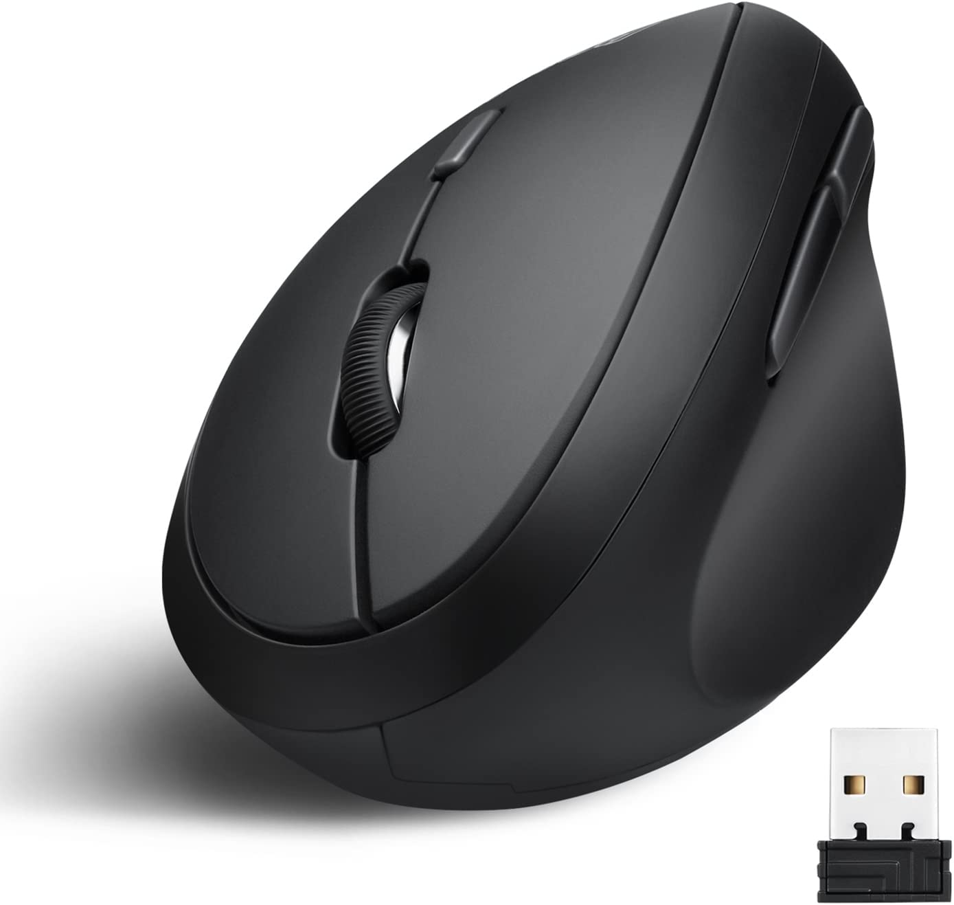 Perixx PERIMICE-719RX Wireless Duo-Rechargeable Ergonomic Vertical Mouse, 2.4GHz, 6 Buttons, Adjustable DPI 1000/1600/2400/3200, Black