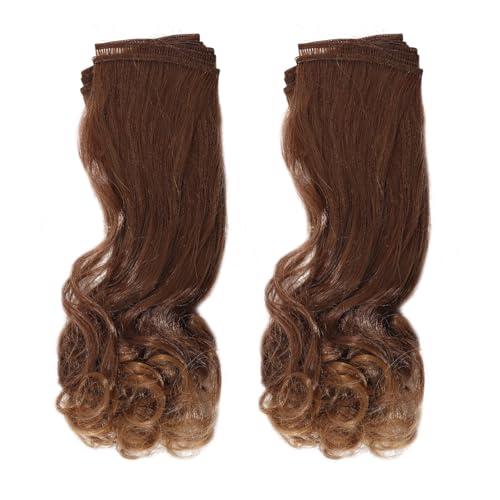 GLOBLELAND 2Pcs Coffee Brown Doll Curly Wig Hair 25cm Pear Flower Perm Long Hair for Making Dolls Wigs Fashion Soft Flexible Synthetic Hairs Extension Dolls Accessories for DIY Doll Making Craft