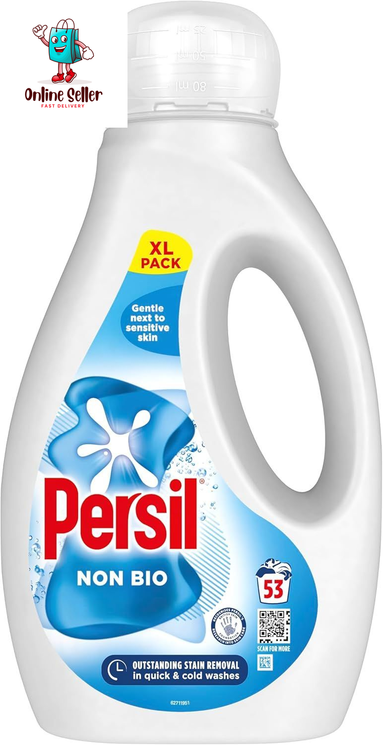 Persil Non Bio Laundry Washing Liquid Detergent outstanding stain removal in quick & cold tough on stains, gentle next to sensitive skin 53 (1.431 L)