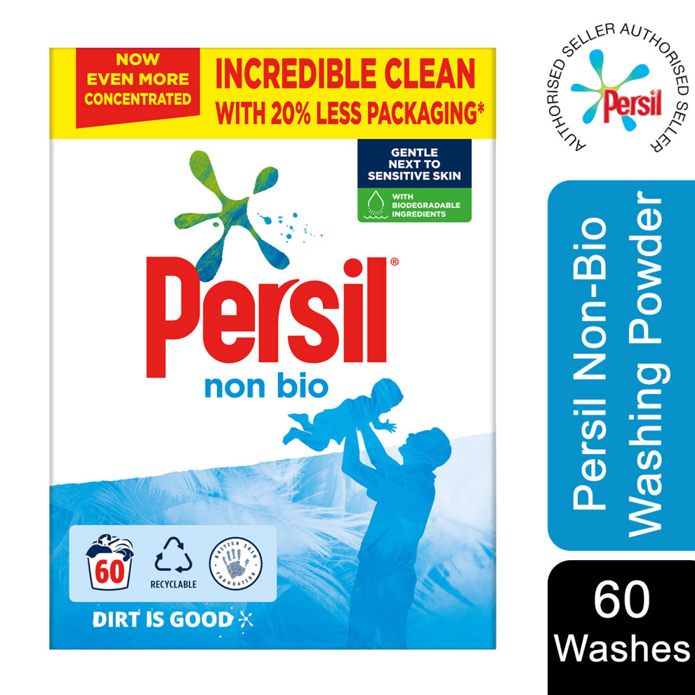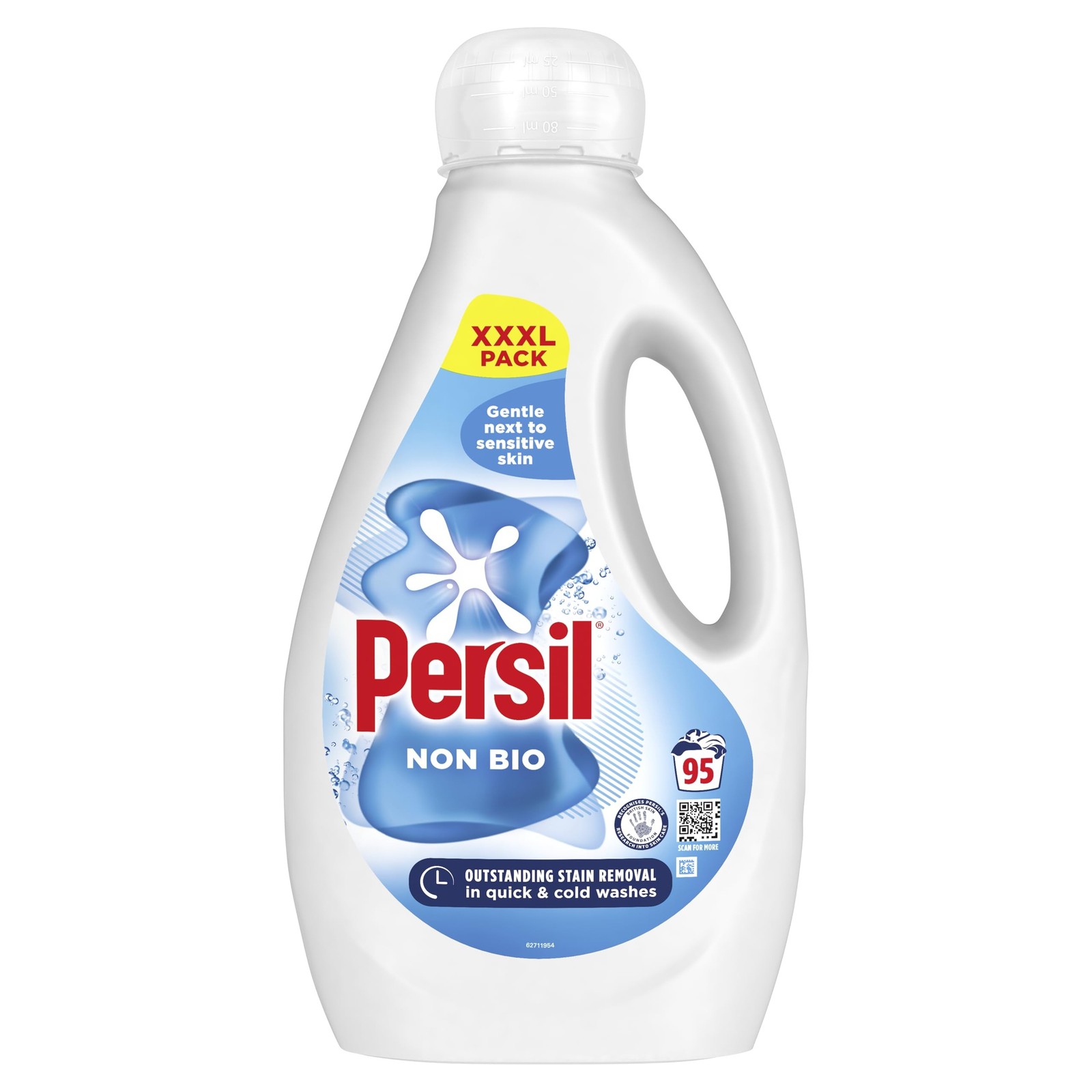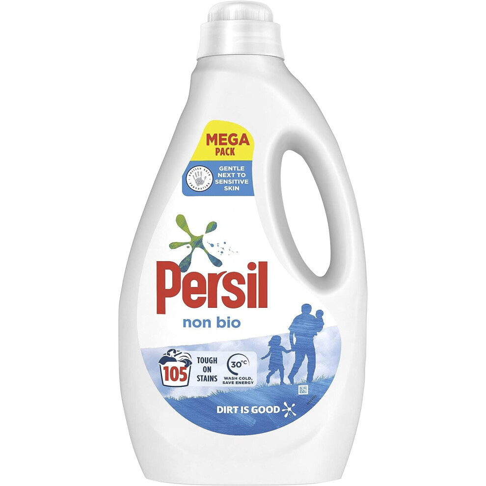 Persil Non Bio Laundry Washing Liquid Detergent outstanding stain removal in quick & cold washes tough on stains, gentle next to sensitive skin 95