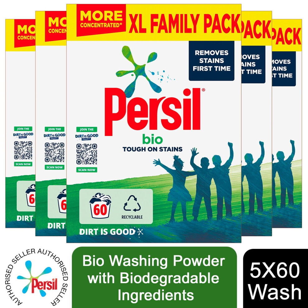 5x Persil Bio Washing Powder with Biodegradable Ingredients, 3kg, 60W