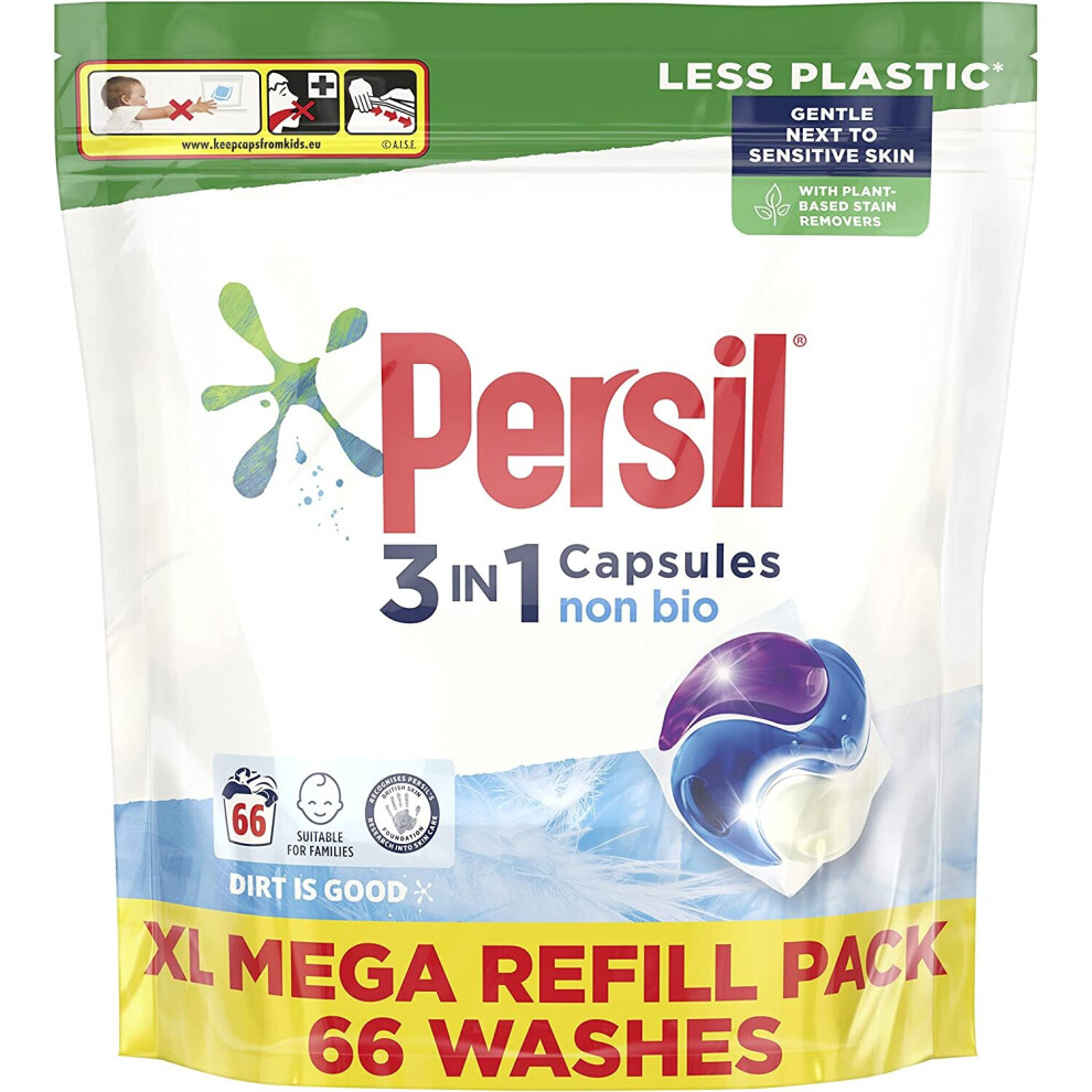 Persil Non Bio 3 in 1 Laundry Detergent Washing Pods Mega Refill Pack (66 Wash) Upto Huggably Soft for Sensitive Skin with Comfort freshness