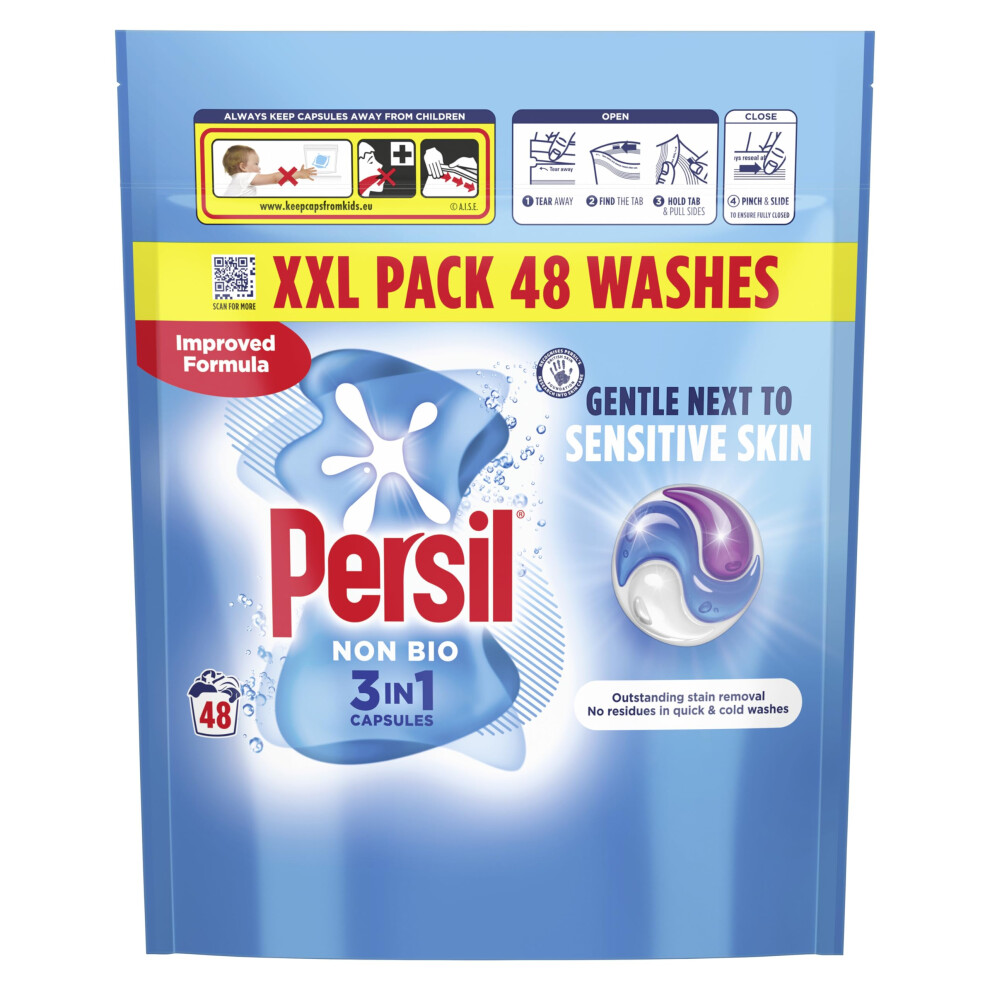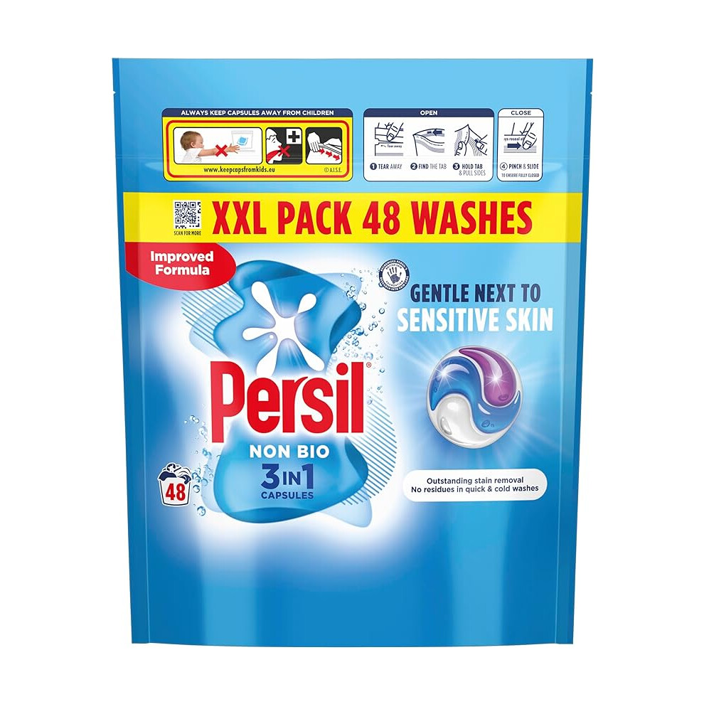 Persil Non Bio 3 in 1 Washing Capsules laundry capsules gentle next to sensitive skin for outstanding stain removal in quick & cold washes 48 washes