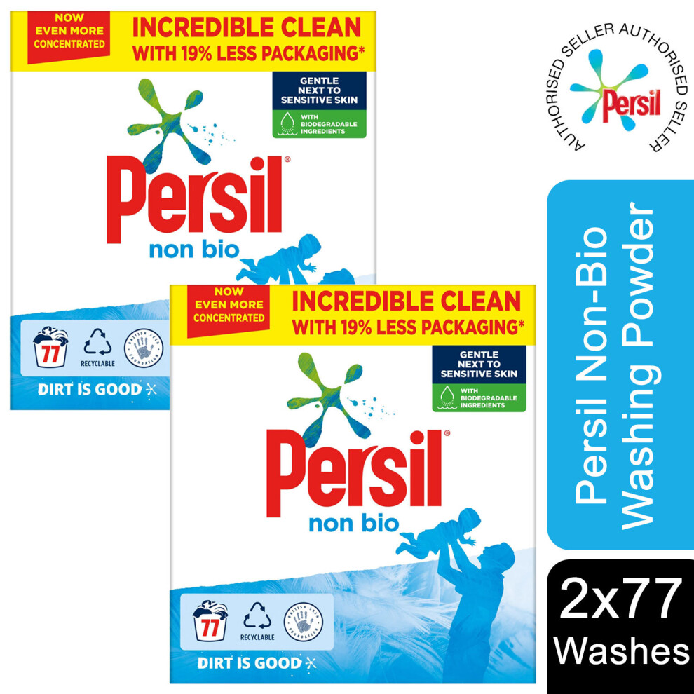 Persil Non-Bio Washing Powder 2x77W (154 Washes) - Gentle on Sensitive Skin, Tough Stain Removal - Biodegradable & Recyclable Pack - 68512924