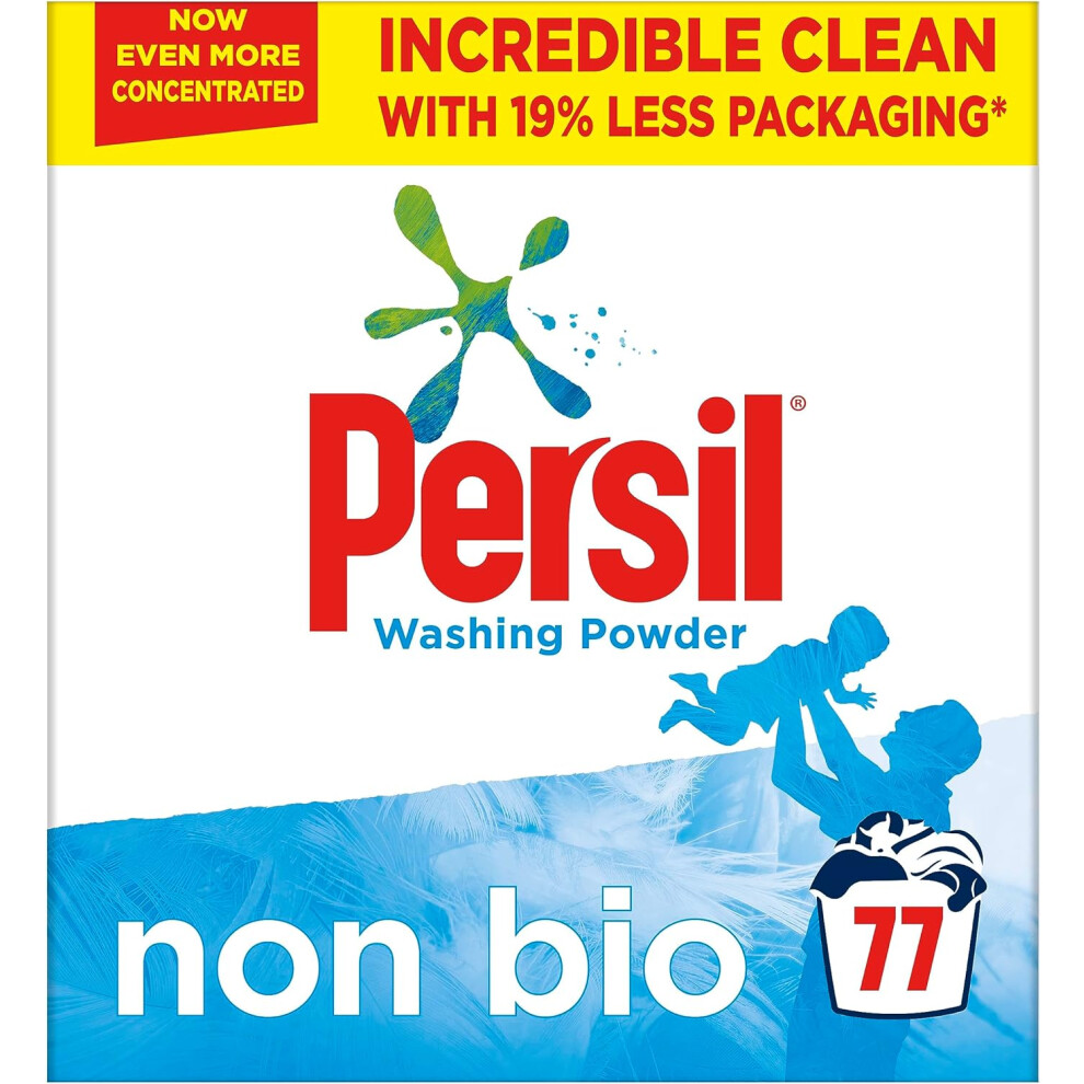 Persil Non Bio Washing Powder XXL Family Pack 100% recyclable pack for stain removal that's gentle next to sensitive skin 77 Wash 3.85 kg