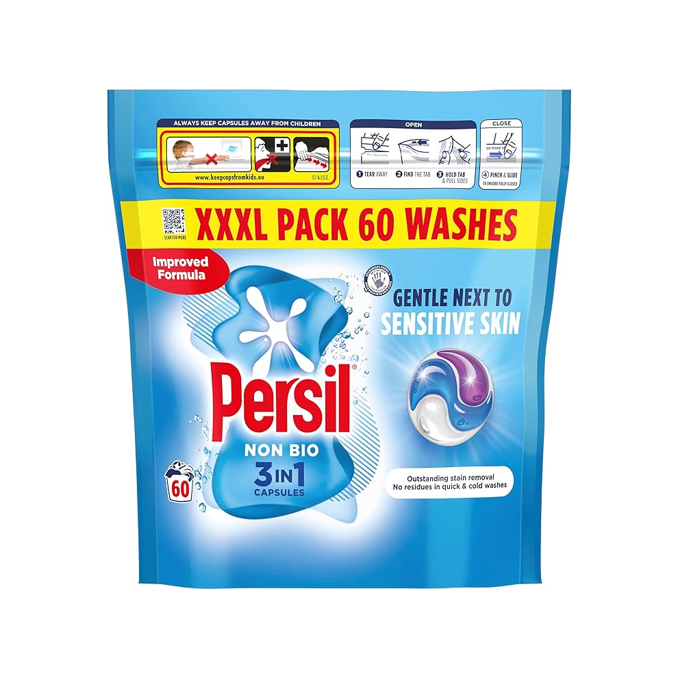 Persil Non Bio 3 in 1 Washing Capsules laundry capsules gentle next to sensitive skin for outstanding stain removal in quick & cold washes 60 washes