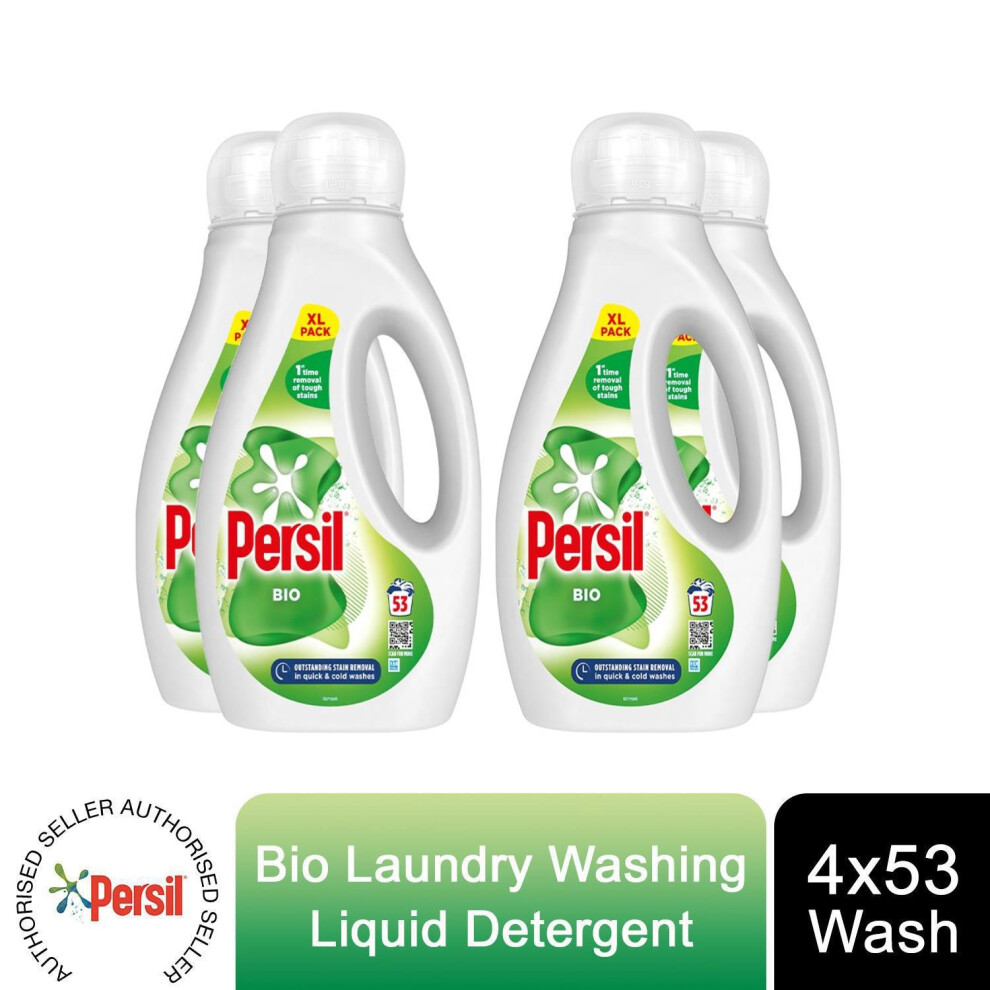 Persil Bio Laundry Washing Liquid Detergent 1st time removal of tough stains outstanding stain removal in quick & cold washes 53 washes (1.431 L)