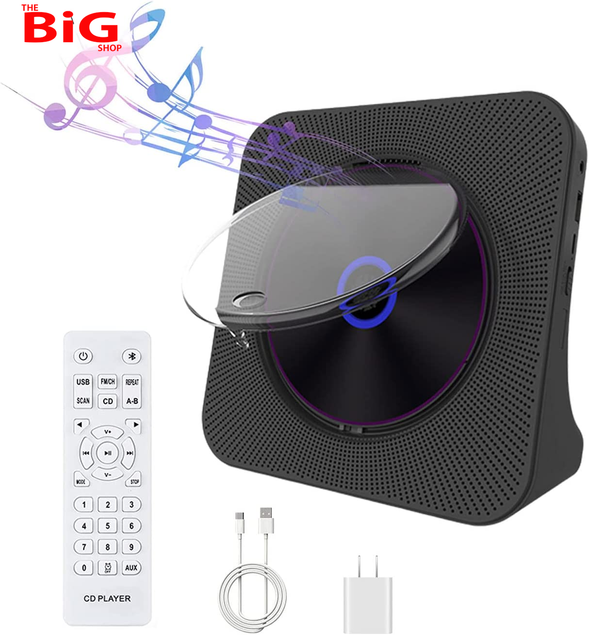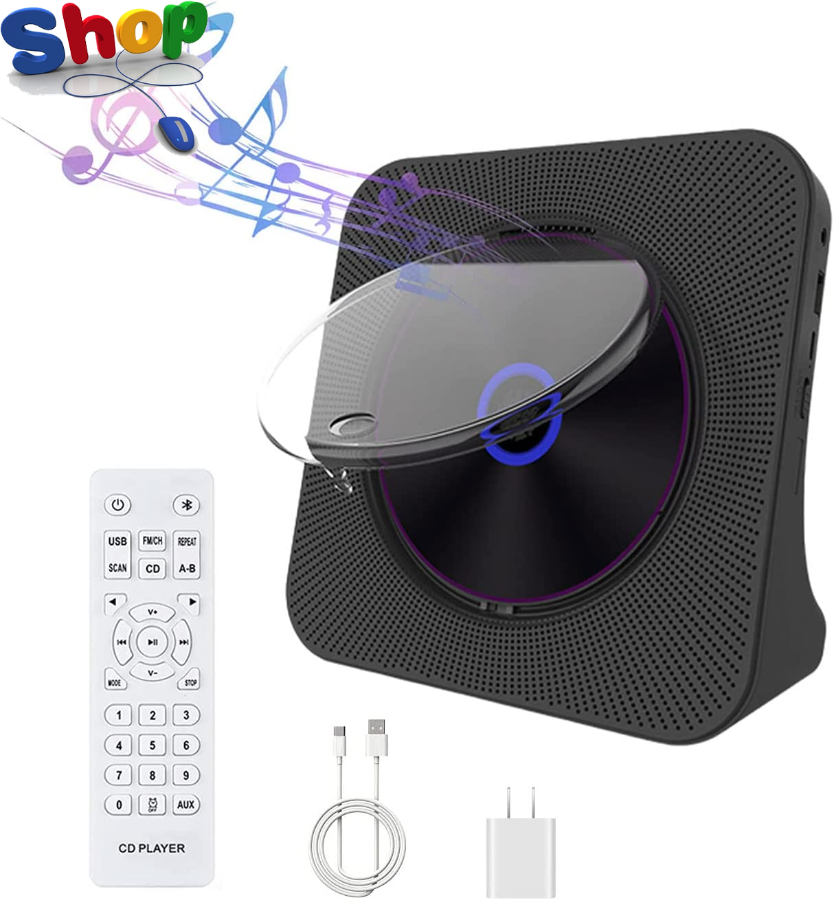 Wall Mountable Portable CD Player with Bluetooth IN and Speakers | Personal Music Player with 12 hours of Playback | Small CD Player with Remote Control, Stand, USB, AUX and FM Radio | Oakcastle CD150