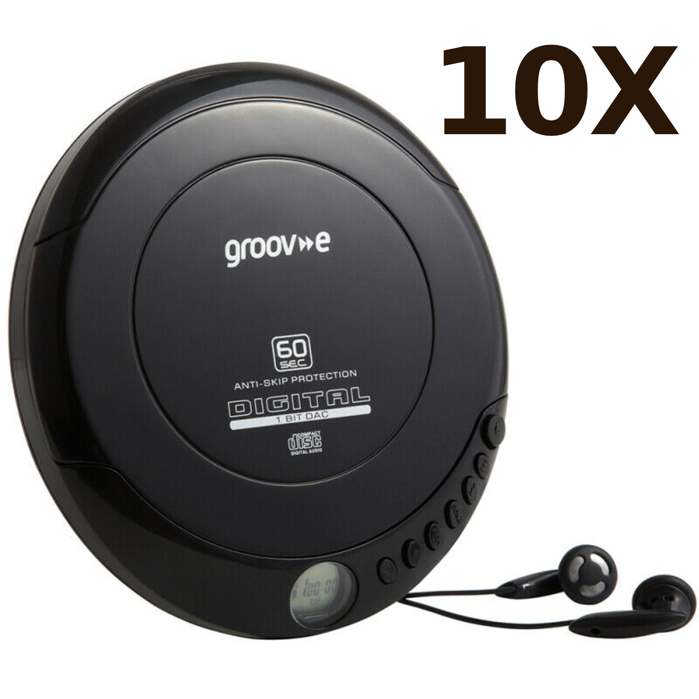 10X Groov-e GVPS110 Retro Series Personal CD Player with Earphones - Black