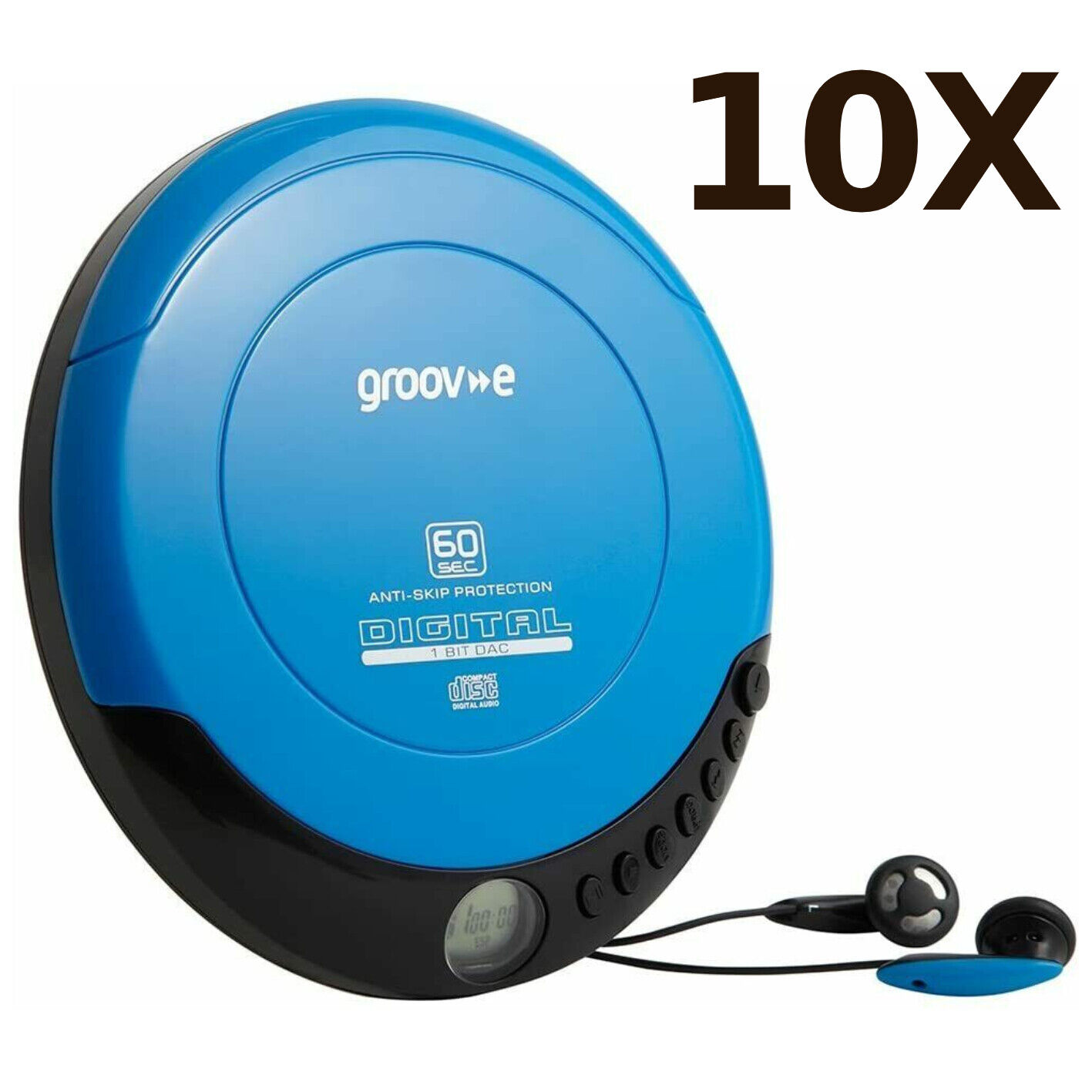 10X Groov-e GVPS110 Retro Series Personal CD Player with Earphones - Blue