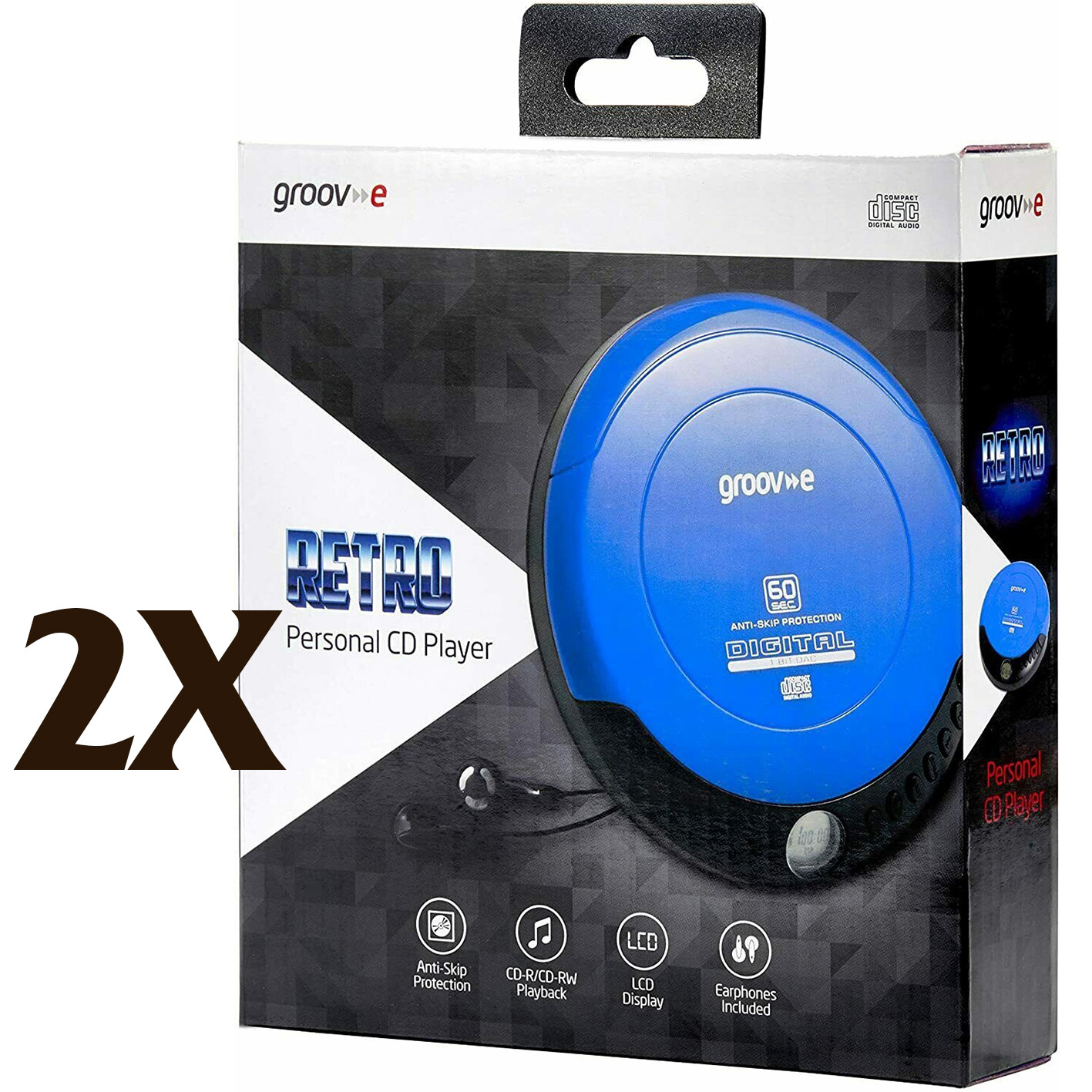 2X Groov-e GVPS110 Retro Series Personal CD Player with Earphones - Blue