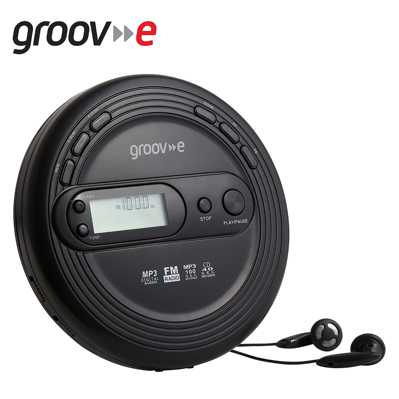Groov-e GVPS210BK Retro Series Personal CD Player with Radio & MP3 Black