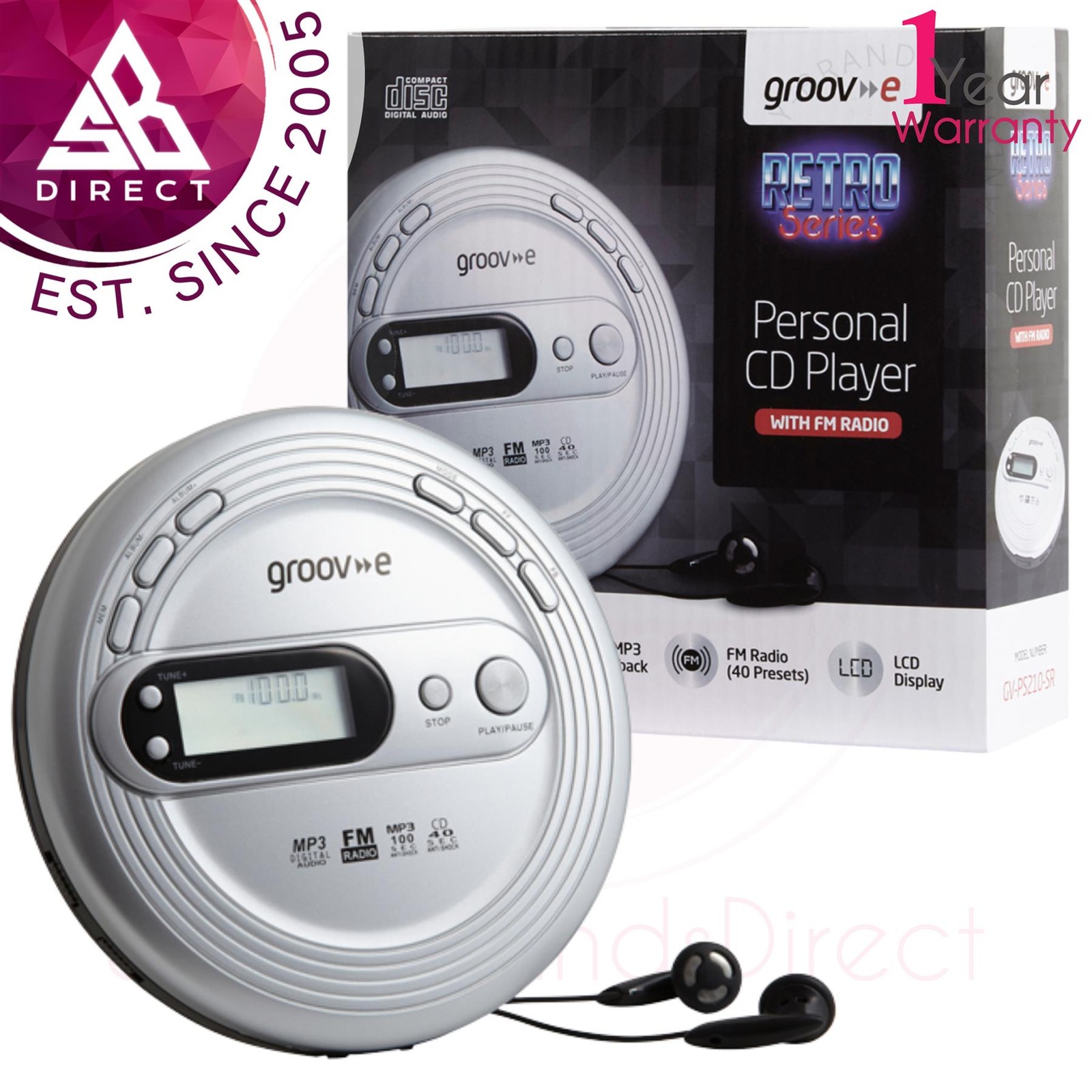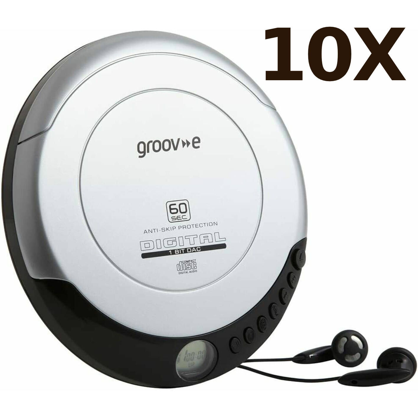 10X Groov-e GVPS110 Retro Series Personal CD Player with Earphones - Silver