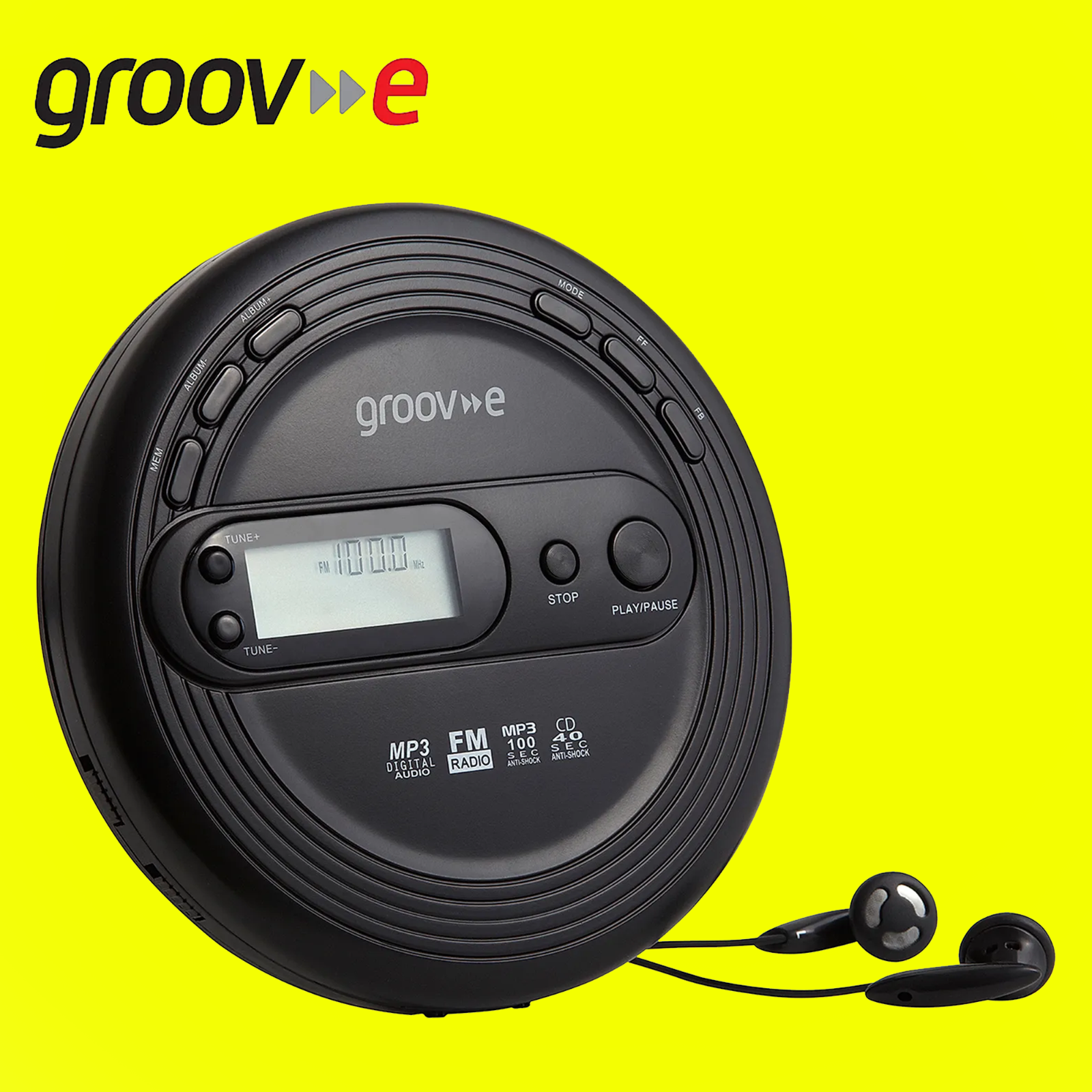 Groov-e GVPS210BK Personal MP3 & Radio CD Player with Track Programmable Memory