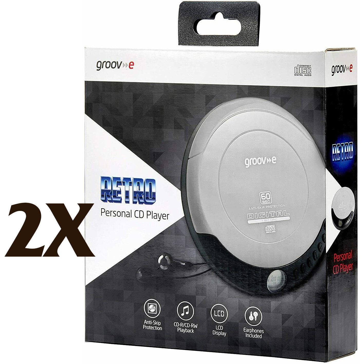 2X Groov-e GVPS110 Retro Series Personal CD Player with Earphones - Silver