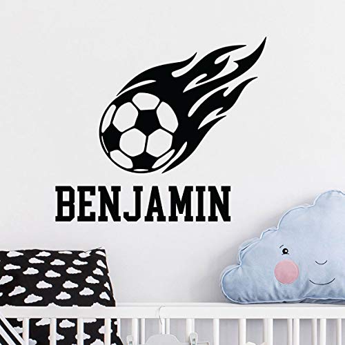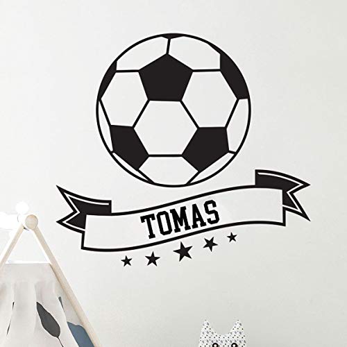 Personalised Name Stickers | Football Wall Sticker - Children's Room Wall Decoration | 2 Sheets of 50 x 55 cm and 60 x 25 cm - Black