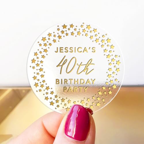 Custom Gold Foil Name Stickers, Fun Birthday Theme Stickers, Printed Birthday Sticker Tags, Personalised Birthday Envelope Seal Stickers - BIRTHDAY07