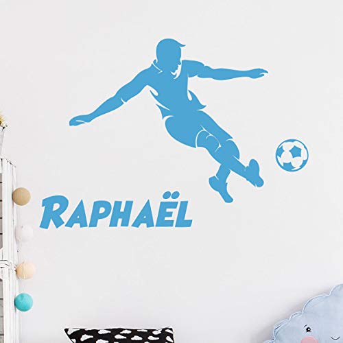 Personalised Name Stickers | Footballer Sticker - Wall Decoration Children's Room | 2 Sheets of 30 x 35 cm and 60 x 25 cm - Navy Blue