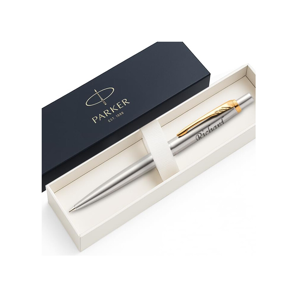 Personalised Parker Jotter Ball Pen Gold Trim - Luxury Engraved Pens - Perfect for Personalised Gifts for Birthday's, Anniversaries, Weddings, Husband, Wife, CEO