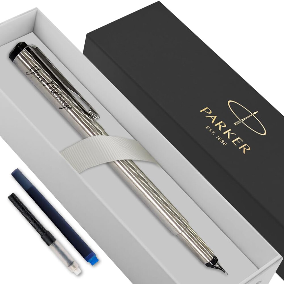 Personalised Custom Parker Jotter SS fountain pen + Gift Box | Laser Engraved - chrome trim
