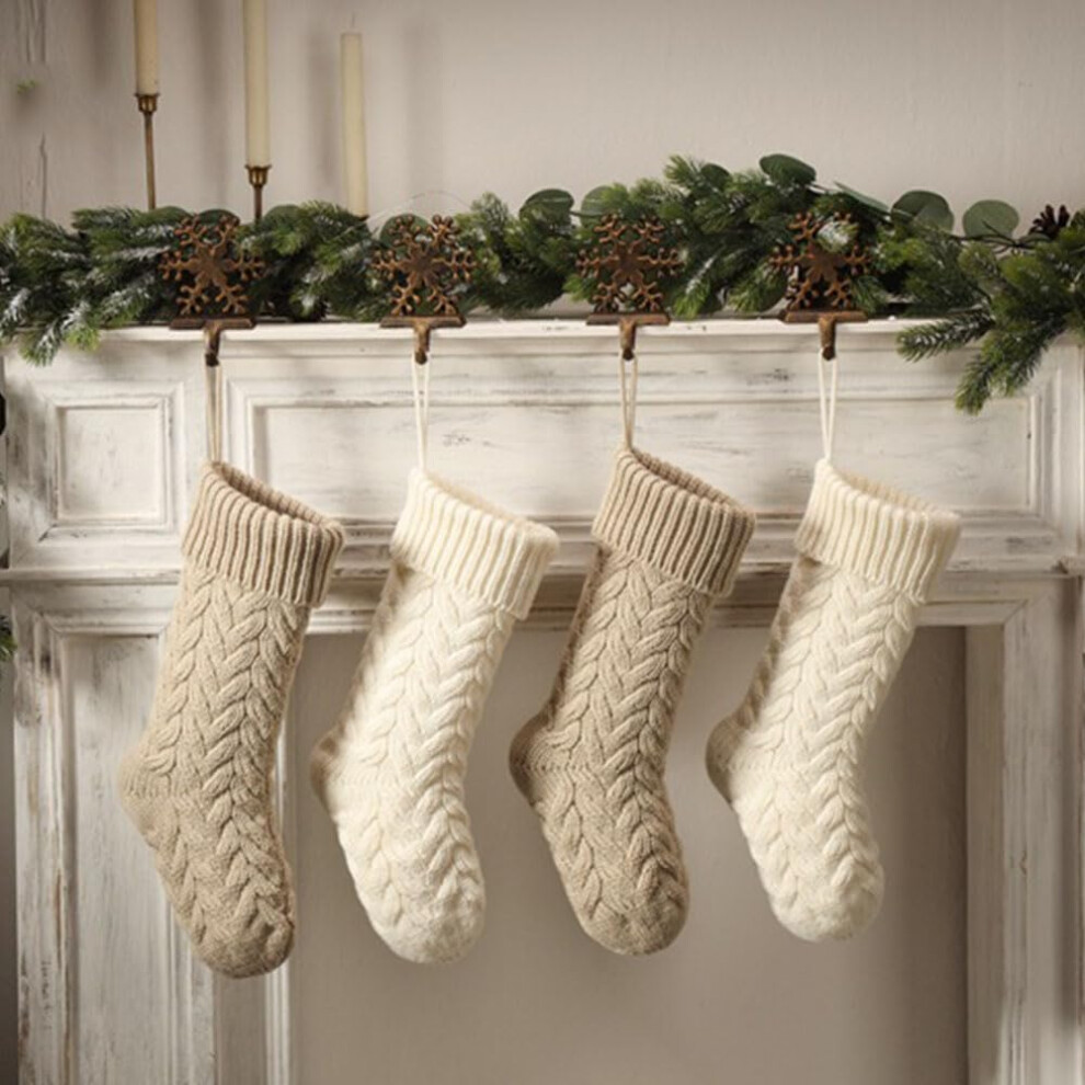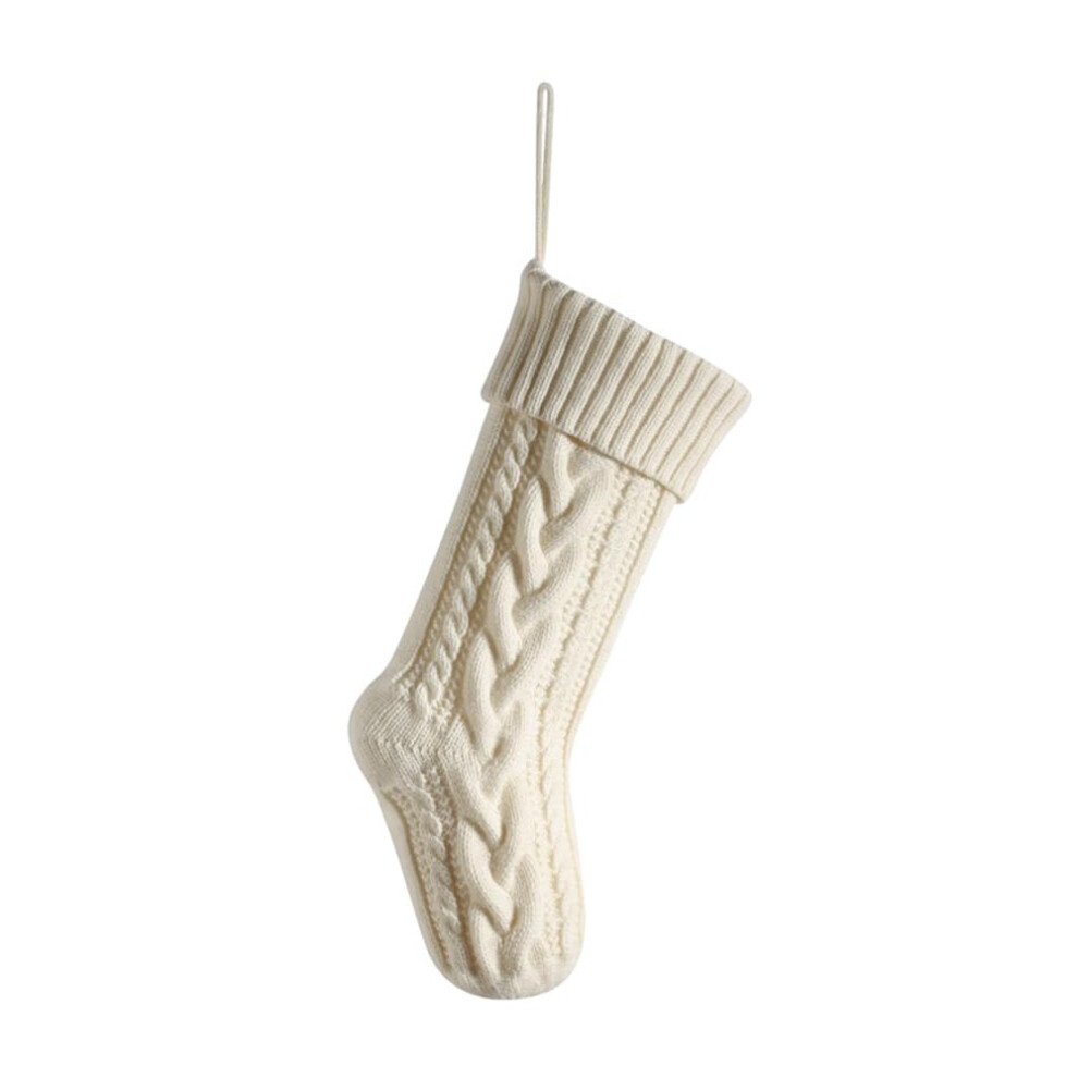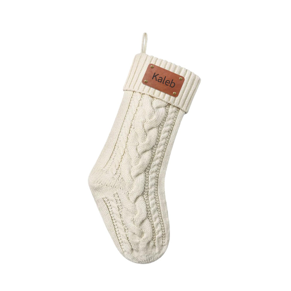 Personalised Christmas Stocking 46 cm Large Classic Knitted Beige Santa Socks for Fireplace and Tree Decoration