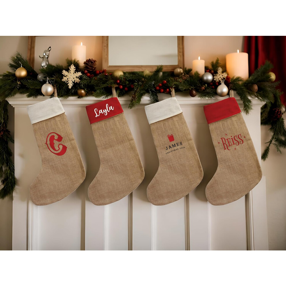 (Style 4, Red & Canvas) Personalised Luxury Christmas Stocking - Custom Jute & Cotton Stockings