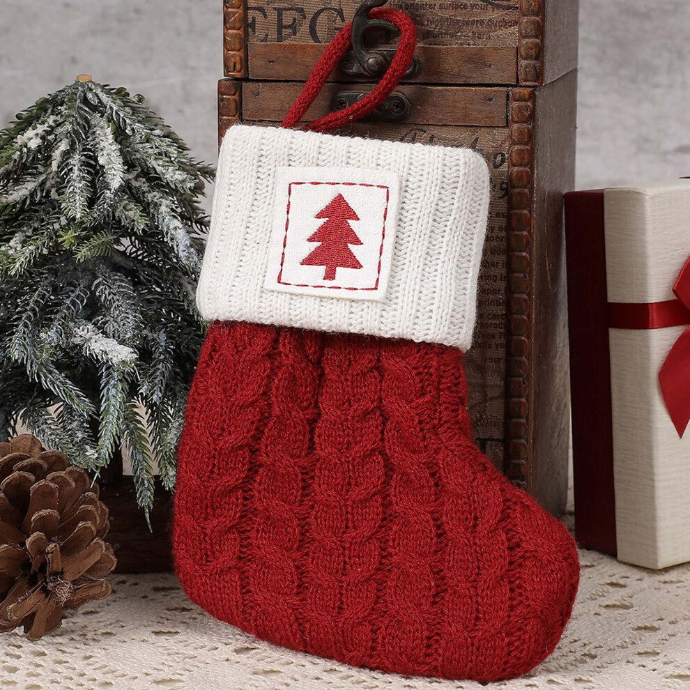 Christmas Stockings 7.9 inch Personalised Knitted Stocking with Letter Monogram Xmas Stockings Red Christmas Stockings Plush Cuff Hanging Stockings Gifts Holding for Xmas Tree Holiday Ornament (S)