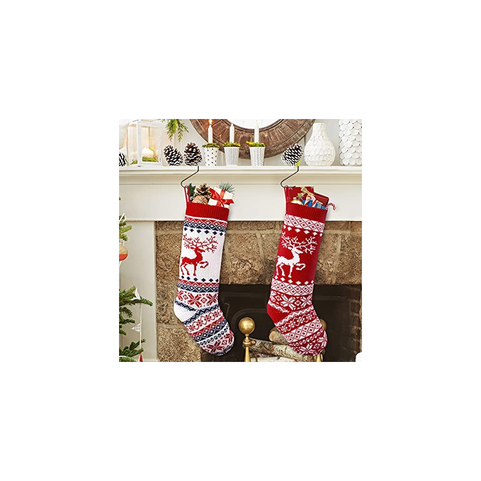 VDSOW Christmas Stockings Set of 2, 18 inch Knitted Christmas Stocking Personalised for Adults Kids, Large Xmas Stockings Hanging Gift Bag Socks