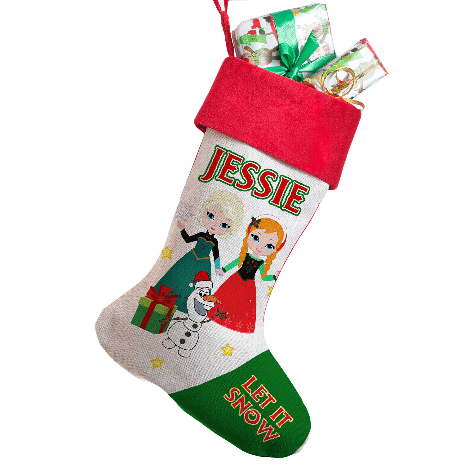 Personalised FROZEN Stocking Christmas Sack Xmas Present Elsa Boot Bag SS11