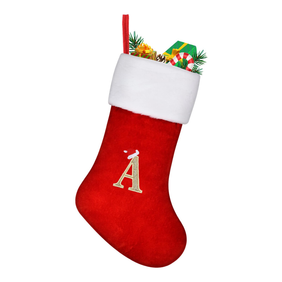 Large Personalised Christmas Stocking - 45cm Red Monogram Letter A Hanging Decoration for Fireplace Mantle & Christmas Tree Gift Holder