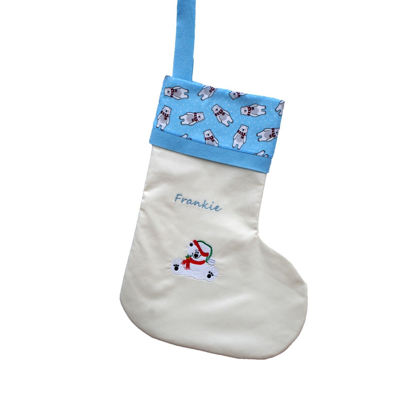 CHRISTMAS POLAR BEAR 50CM PERSONALISED CHRISTMAS STOCKING WITH EMBROIDERED NAME