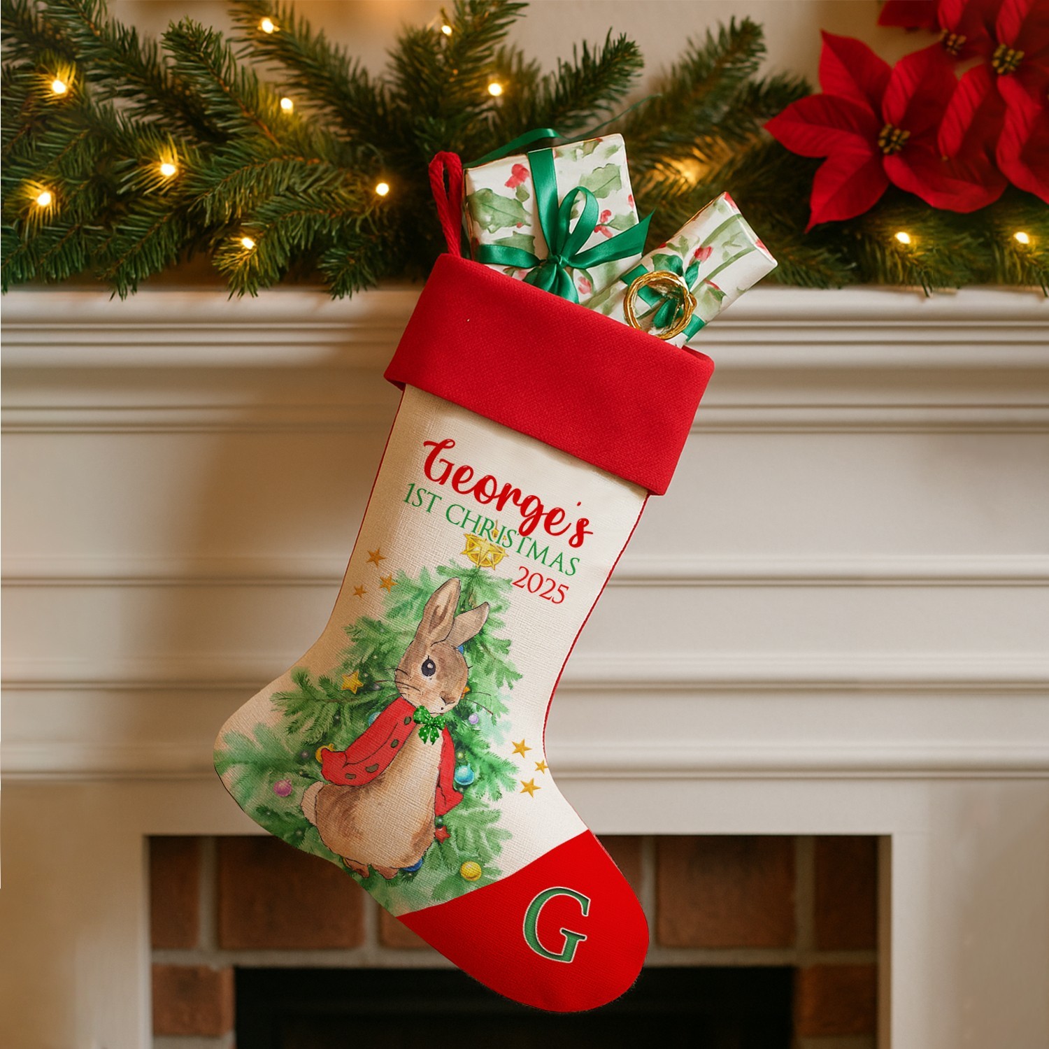 Personalised RABBIT Stocking First Christmas 1st Baby Xmas 2025 Present Bag SS07