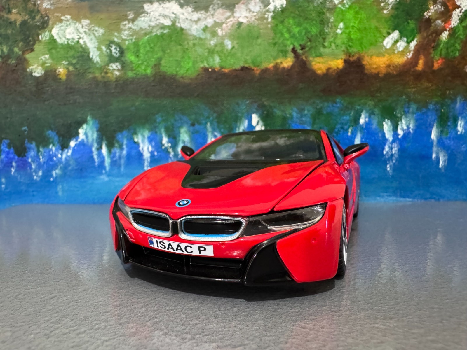 Personalised Name Plate Red BMW i8 Rastar 1:24 Diecast Model Car toy Box