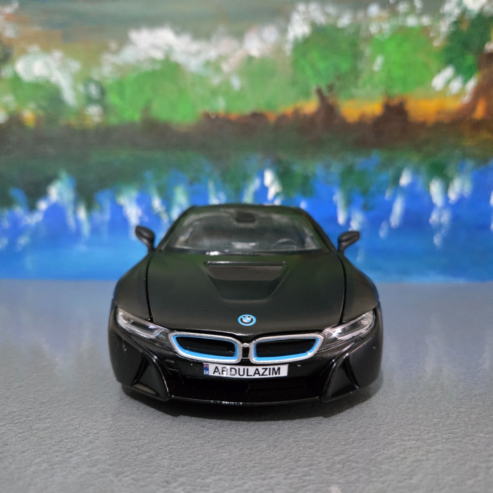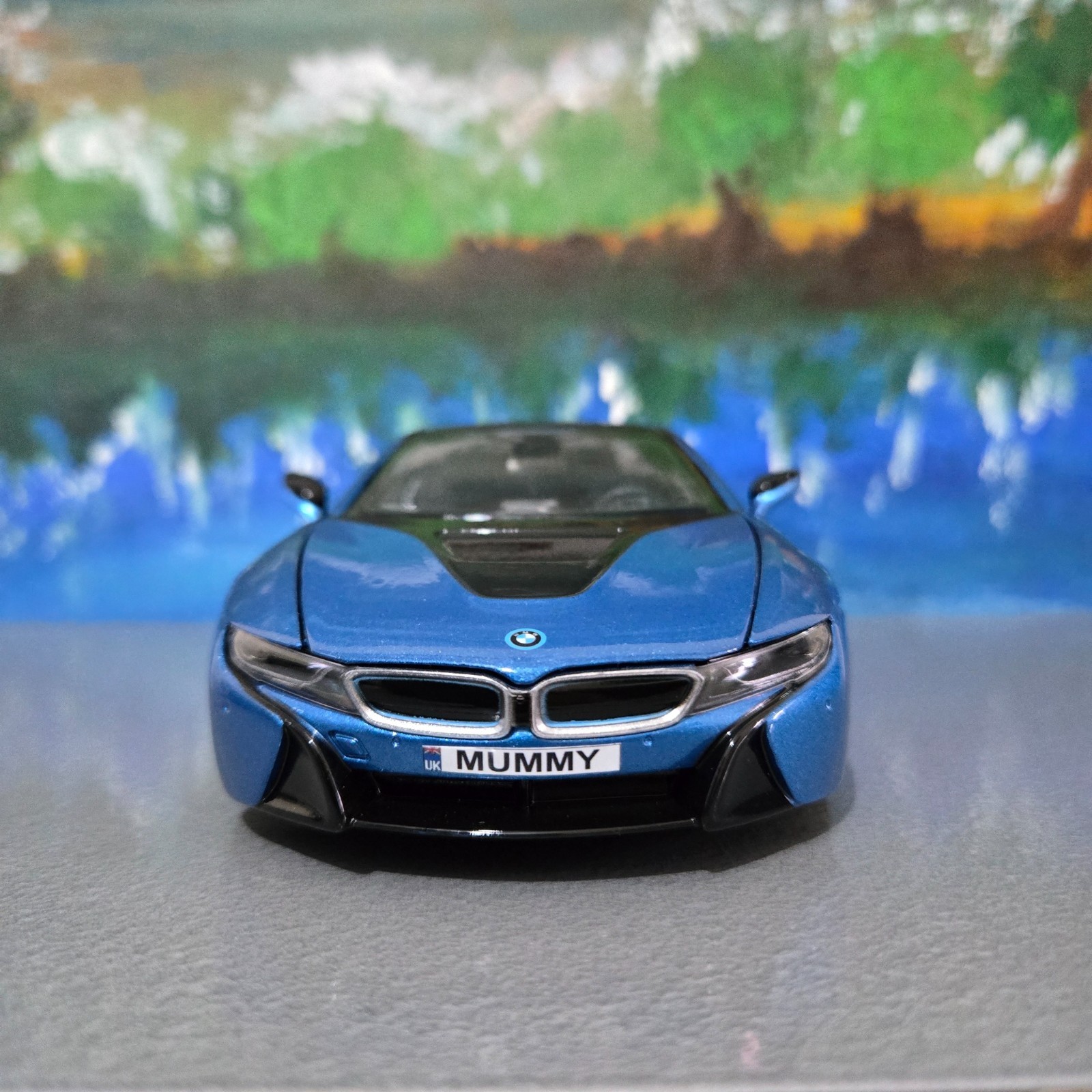 Personalised Name Plate Blue BMW i8 Rastar 1:24 Diecast Model Car toy Box