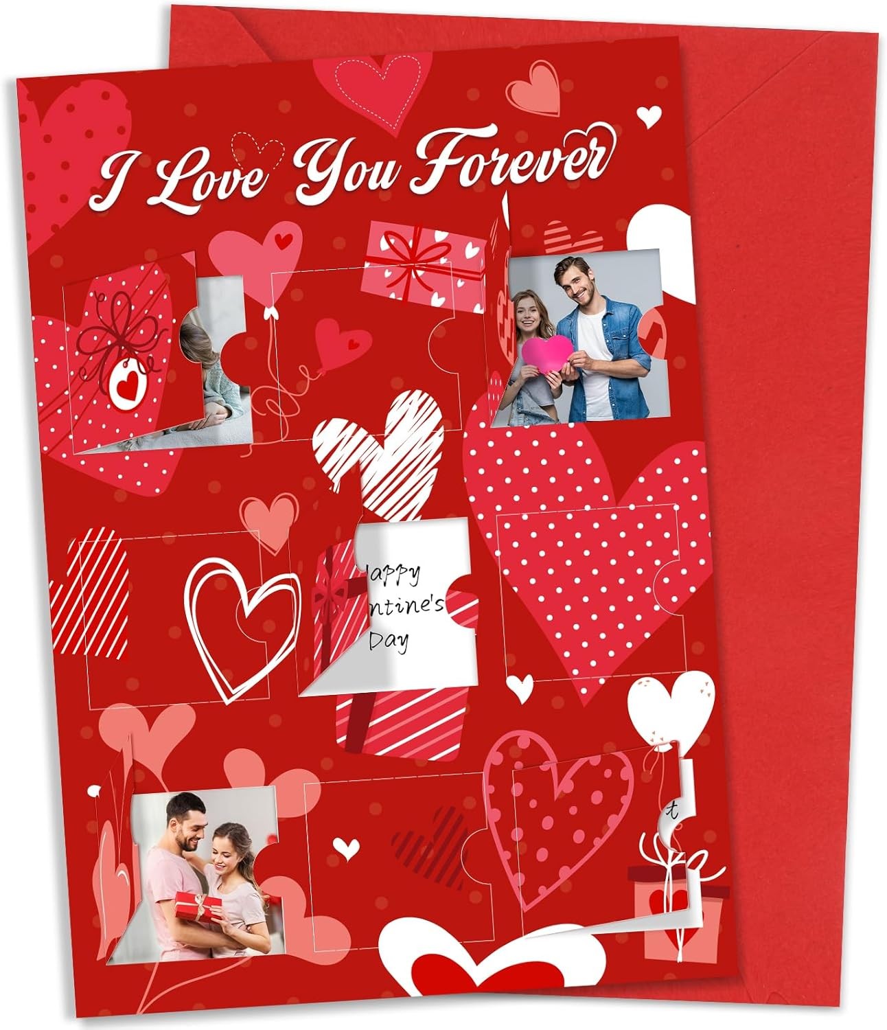 HOWAF Personalised Valentines Card for Photo & Messages, Valentine's Day Card,